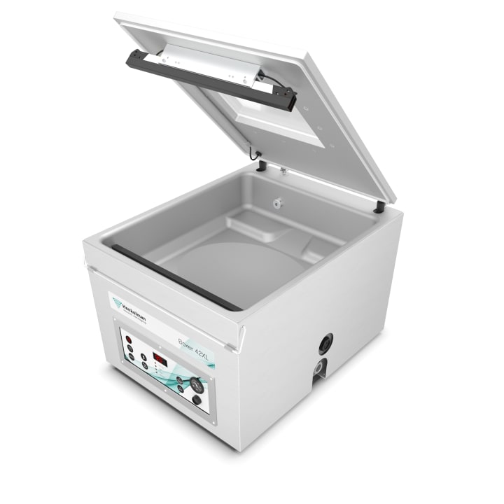 The vacuuming machines suitable for electronics (Falcon 52 and 80 single chambers and Boxer 42XL) are equipped with a 10-program memory, time control, bi-active seal and without insert plates.