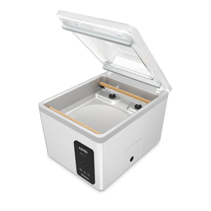 Once you have chosen the correct program and closed the lid, the vacuum process begins. In concrete terms, this means that the machine extracts all air from the bag, the product and the chamber so that the desired vacuum result is achieved or until the boiling point of the liquids has been detected.